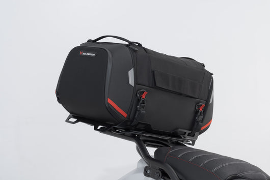The tail bag from the PRO series is made by SW-MOTECH from indestructible 1680 D Ballistic Nylon and the rack from robust aluminum alloy. The rack is attached to resilient bike-specific mounting points on the motorcycle.