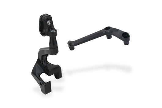 Steering Damper Mount kit for Ducati Multistrada V4 Pikes Peak / RS WITH CNC's Handlebar Clamp made in light alloy, machined from solid Billet and then anodized.The kit is designed to be used with a 68mm stroke linear Ohlins damper, code SD 001 / SD 008, but may work with any 68-70mm stroke damper with M6 Mounting Bolts on the Rod End and ClampIf you have the OE Handlebar clamp for the Multi V4, you need to use SD117