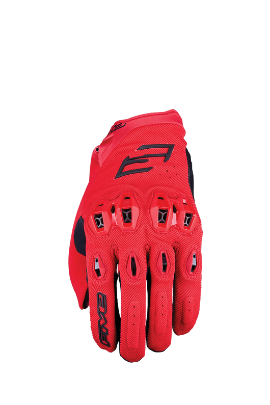 This is clearly the most common, new-gen iteration of the STUNT concept invented by FIVE. Its topside construction in tough stretch Twill Span fabric contributes greatly to the exceptional comfort of this iconic style. It features exceptional protection, given the second-skin feel it offers, with its AirgoProtech™ shells inspired by helmet technology (see previous pages), featuring a particularly innovative design. Its 100% full-grain goat leather palm, which is both supple and durable, feels so smooth and soft to the touch…And yet, it offers excellent grip on the controls and hosts a leather reinforcement lined with an ERGO PROTECH® semi-soft, honeycombed protective shell that offers a reassuring feeling of safety, without hindering your movements in any way. With its signature look, the STUNT EVO2 offers its rider a certain kind of status: that of an avant-garde design aficionado, even offering the feeling of being truly on the cutting edge, even ahead of the curve.