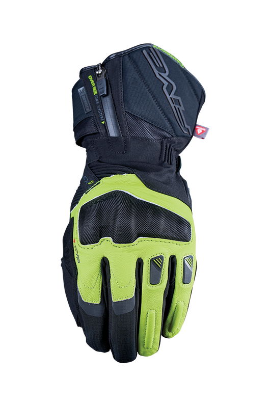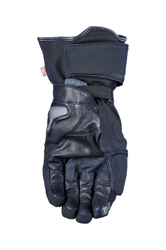 Usefully combining the benefits of leather with the technical advantages offered by some synthetic materials was our goal in designing the WFX 1 EVO WP, a modern, warm, comfortable, protective, and supple glove to face the harshness of winter. Its entire palm is made from goat leather, renowned for its extreme suppleness. The same goes for most of its topside construction, to which we’ve added water-repellent, stretch technical fabrics. The main asset of this WFX1 EVO WP is clearly its Primaloft® thermal insulation, a sort of water-resistant, synthetic down fill that captures the natural heat of your hands to create a thermal barrier against outside temperatures. The 5_DRYTECH™ membrane ensures the breathability and weatherproofing you need when it’s raining. It’s glued to the palm, ensuring that it stays put and offering better grip on the handlebars. An internal lining on the top of the hand in synthetic fur adds a feeling of soft comfort that’s comforting when the cold gets to you. Protection is provided by a one-piece ERGO PROTECH® shell concealed under the fabric on the metacarpals, and by the very latest in soft palm shells, along with reinforcements on the outer fingers. Comfort gussets around the wrist contribute to perfect freedom of movement. Particular attention has been paid to the cuff and the closure system. The Over Size Cuff System allows you to adjust the length of the cuff using a weatherproof zipper, so you can more easily wear it over your jacket’s sleeve. A two-point adjustment-strap anchor ensures perfect wrist hold. The WFX1 EVO WP features elements that make your everyday ride more enjoyable, such as the Touch Screen™ system for handling device screens, or the Clear Vision Pad™ on the left hand, which allows you to wipe off your helmet visor while you ride. WFX1 EVO WP: the glove designed for long rides in the rain or cold, while your hands stay warm and dry.