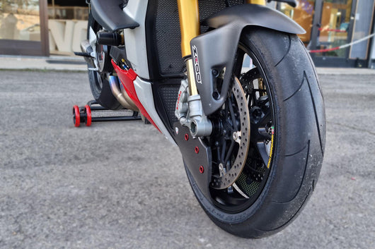 Developed in collaboration with partner teams in MotoGP and WorldSBK!!The kit consists of: two conveyors made in carbon fiber and Kevlar - Baked with autoclave process and then two brackets made in light alloy, machined from solid and then anodized.No modifications to the motorbike are required, it's a plug & play product.