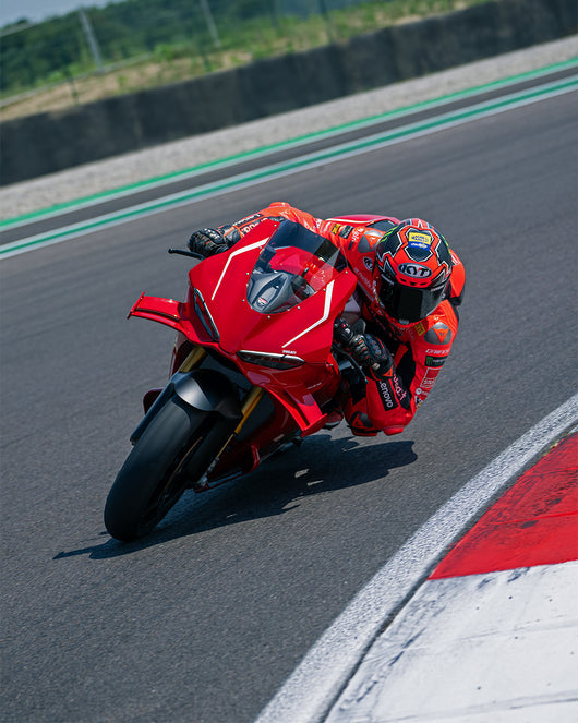 The latest evolution of a legendary saga that epitomizes Ducati's sports attitude. Developed to respect the WorldSBK championship regulation, the new Panigale V4 R embodies the success achieved by Ducati in MotoGP and Superbike. Powered by the 998 cc Desmosedici Stradale, it is the first bike homologated for road use to feature Corner Sidepods and the Ducati Racing Gearbox with Ducati Neutral Lock (DNL).