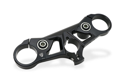 Top yoke made in light alloy, machined from solid and then anodized. Plate respects the oem angle of inclination. Fixing screws in lightened stainless steel are included and the Vibration dampers are Pre-installed