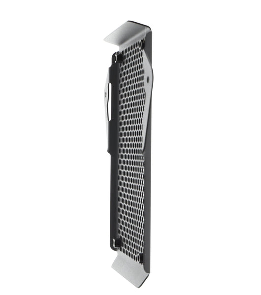 Hexagonal hole pattern to optimize airflow while providing maximum protection from road debris.