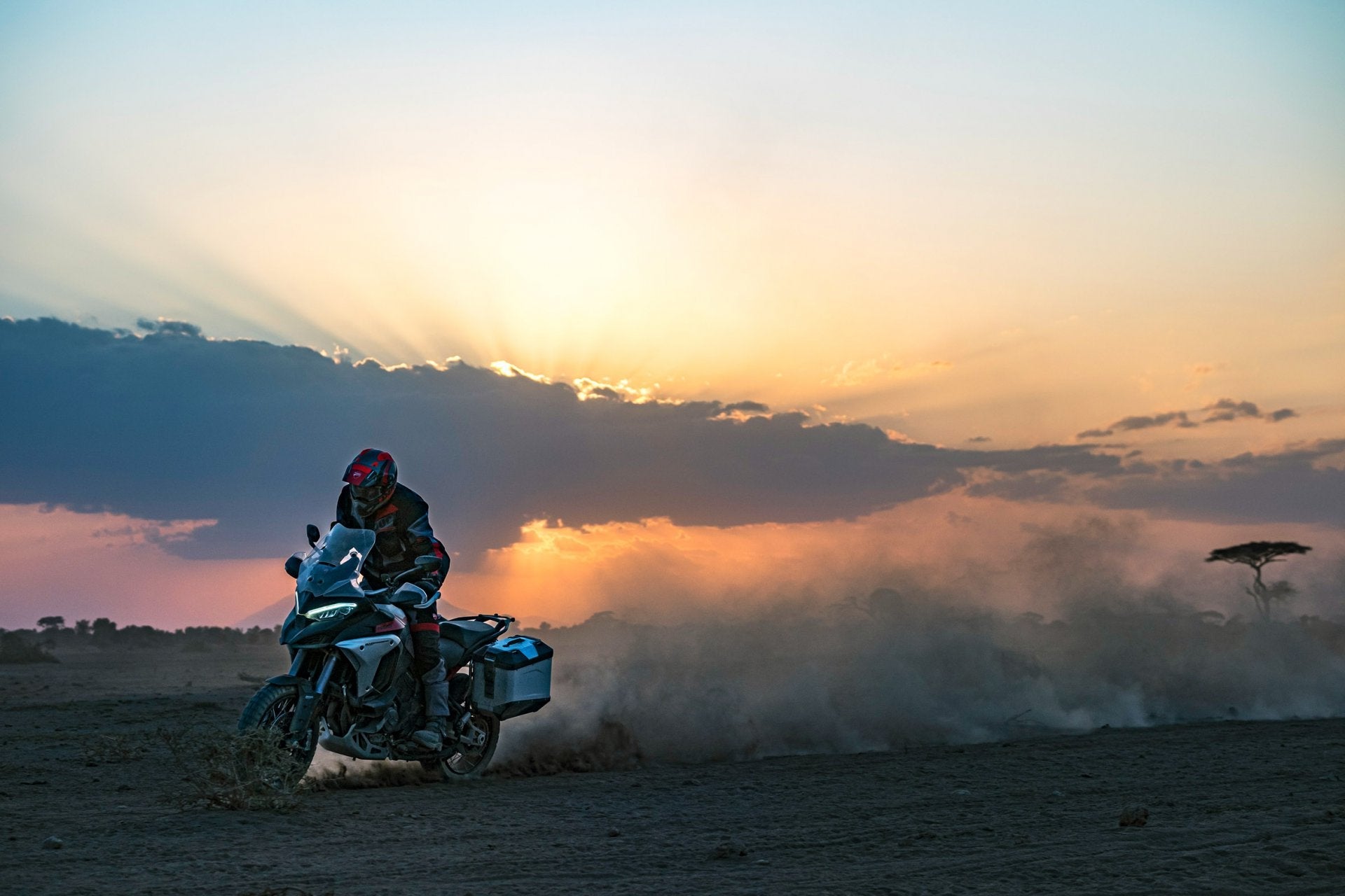 The new Multistrada V4 Rally is the ideal travel companion in all conditions, as easy and intuitive in the urban jungle as it is on the most daring off-road routes. High-performance, robust and reliable V4 Granturismo engine and extended service intervals, will take you wherever your adventurous heart desires.