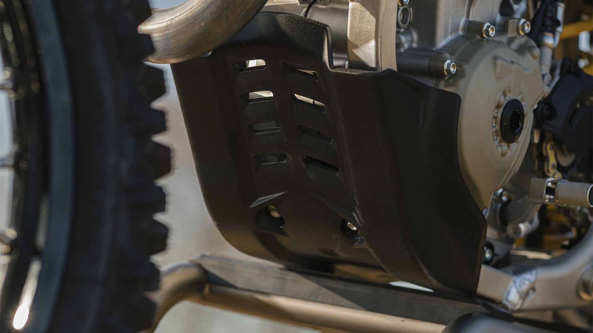 Designed around the engine, the Desmo450 MX Factory mounts the first single-cylinder four-stroke with desmodromic timing in the history of motocross. Thanks to the full Akrapovič exhaust, it offers a broader torque curve and 63.5 hp of power at 9,400 rpm.