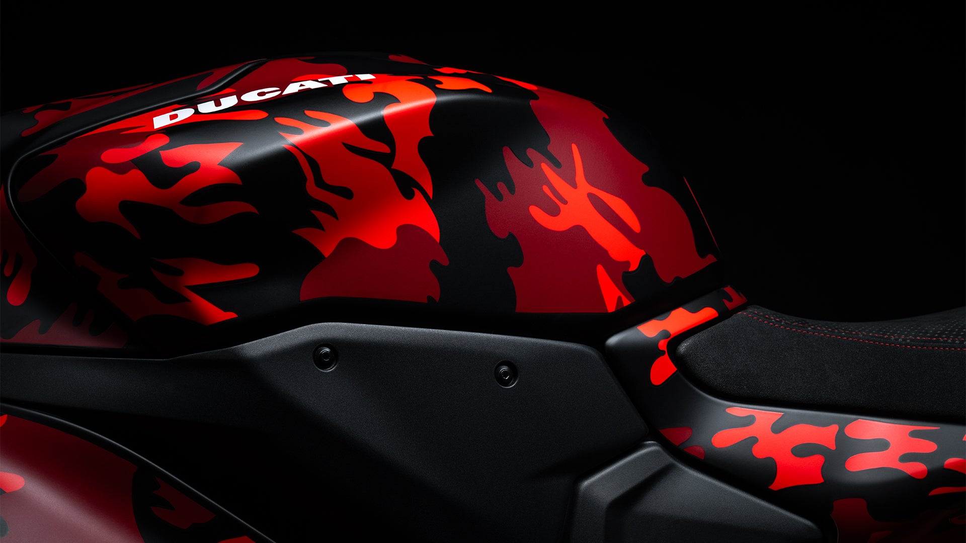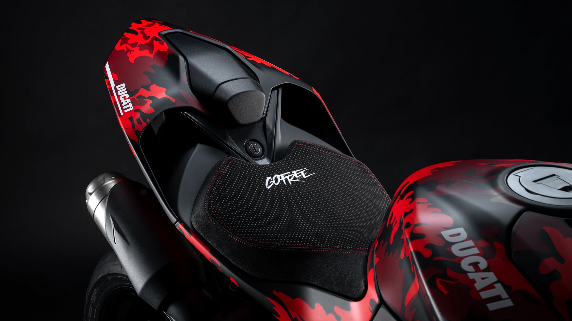 This special edition of the Panigale V2 was developed based on its role as a training bike for Francesco Bagnaia. The dedicated equipment included in this version forms the ideal setup for hitting the track: racing-position handlebars, forged wheels, and more racing-inspired details to make the Panigale V2 even more effective on the curbs. The one-of-a-kind livery is inspired by Francesco Bagnaia’s race helmet and gloves, making this Panigale V2 instantly recognizable.