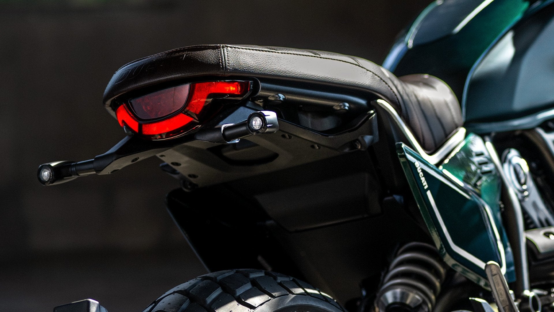 The Scrambler® Nightshift stands out for its unique blend of style and character. The renewed seat, with its distinct texture, perfectly complements the Emerald Green livery, enhancing the bike’s elegant and timeless attitude.