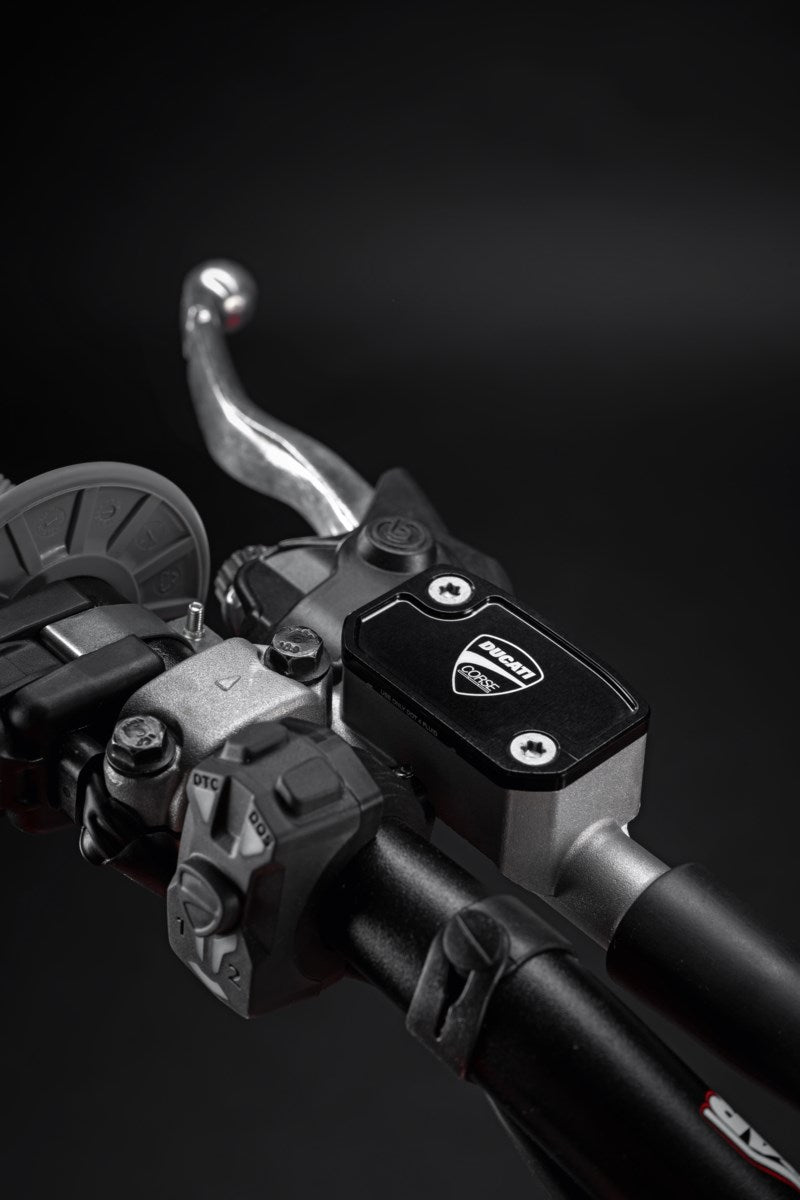 A racing-inspired look and excellent grip define these brake and clutch fluid reservoir covers, ideal for those who appreciate standout details. Perfectly in tune with the bold character of the bike.