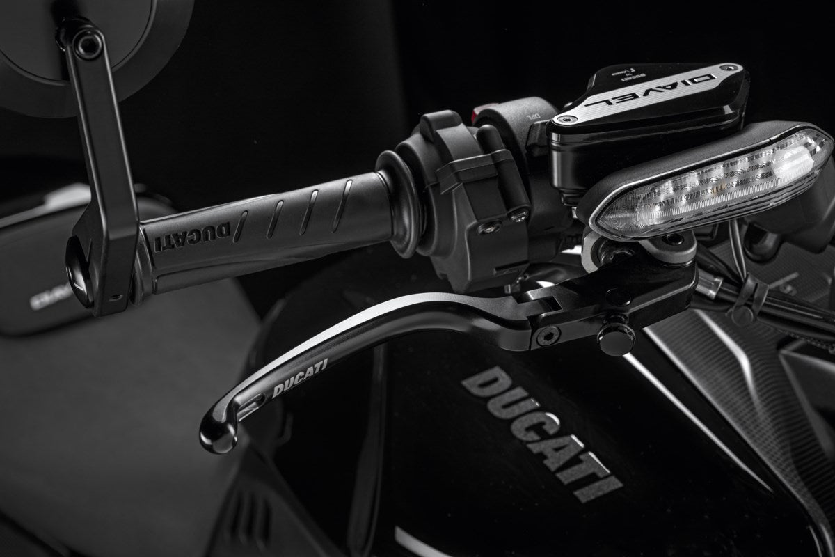 Made with 3D machining and featuring a sporty line. Adjustable and articulated to reduce the possibility of breakage. Lightness and aerodynamics coupled with excellent grip provide a high level of performance. Developed in partnership with Rizoma.