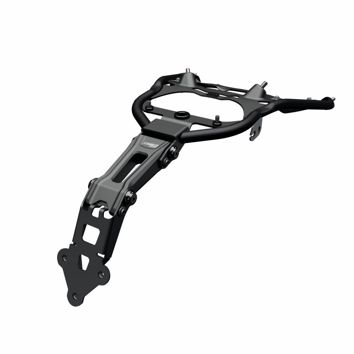 Featuring an LED number plate light, this number plate support bracket adds lightness to the rear of the Scrambler, complementing its simple, clean appearance, in perfect café racer fashion.