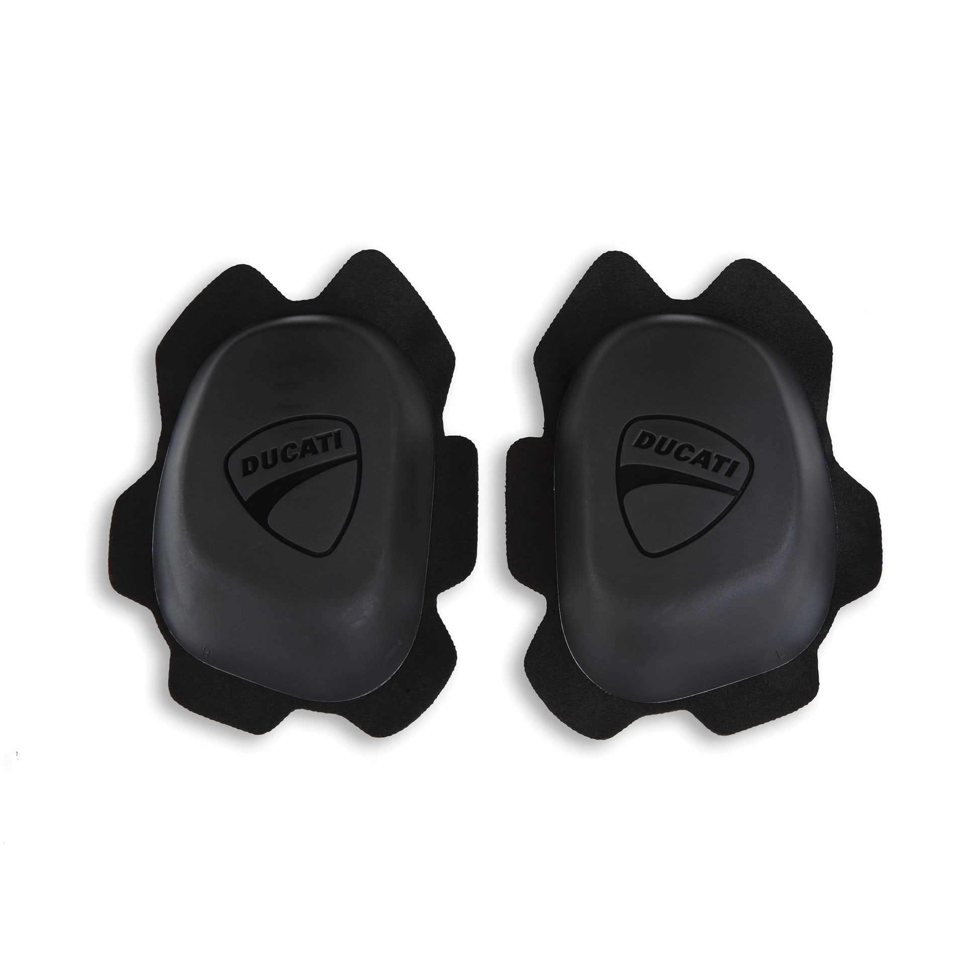 Made of thermoplastic material and shaped on the anatomy of the knees, Ducati sliders are comfortable and functional. Available in red and black color variants, they are attached to pants or suit utilizing a durable layer of Velcro.