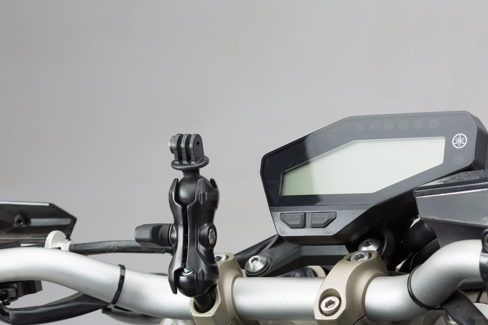 Our universal kit offers a variety of different attachment options on the motorbike: The included 1" ball can be mounted on a M6 or M8 thread, on a mirror thread holder or with a mounting clamp. The mounting clamp is designed for handlebars with a diameter of 22. 28 mm or 1". A pivoted socket arm makes positioning in the cockpit easy - so the display always remains in plain sight, without obstructing instrument view.