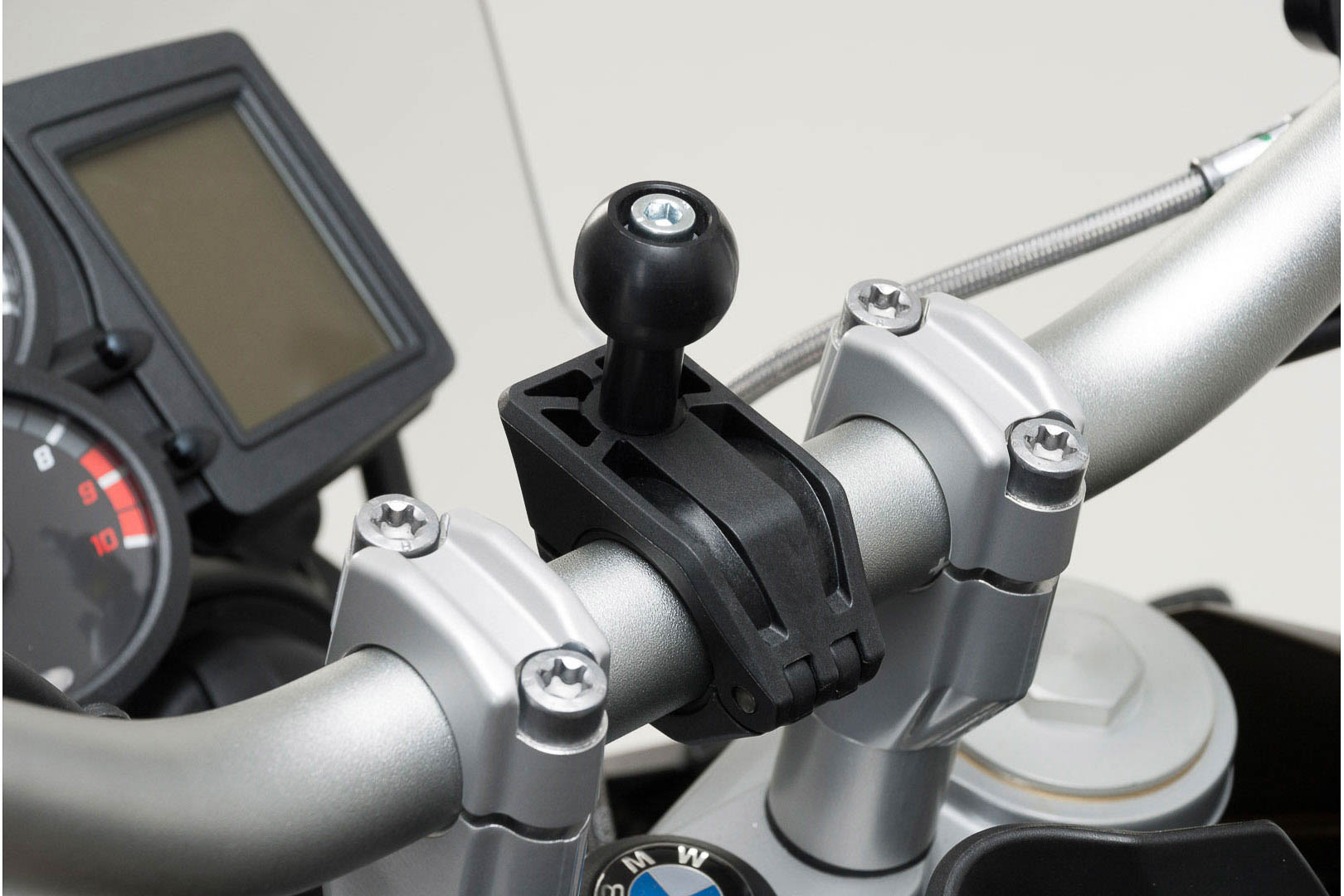 The 1" ball kit allows the attachment of GPS devices to handlebars with a diameter of 22. 28 mm or 1". by means of a mounting clamp. A clamping arm can be attached to the ball adapter, which allows a variable positioning of the GPS device.