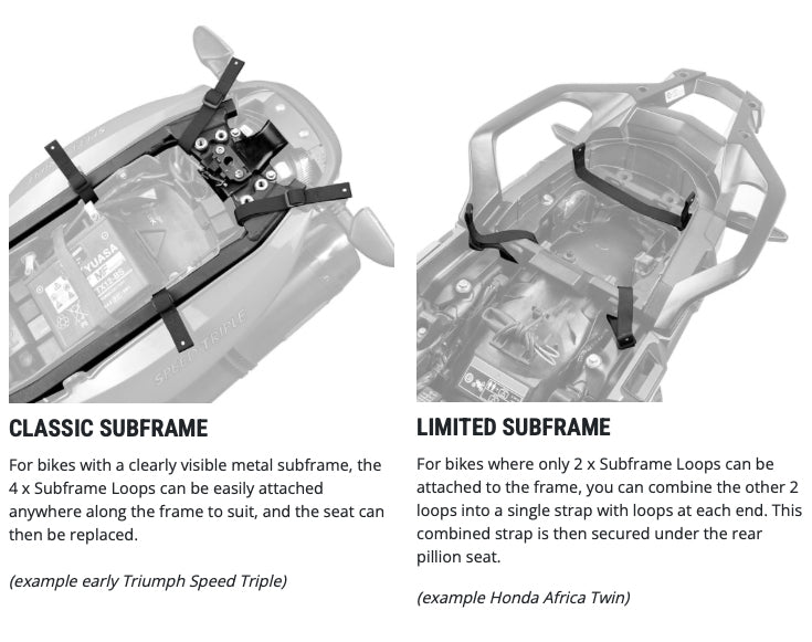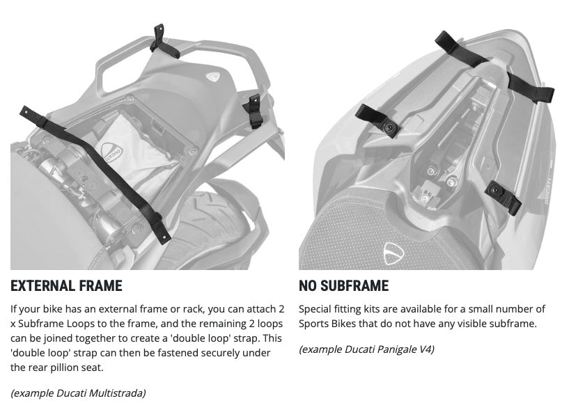 Easy to fit with quick-release hooks attaching to web loops secured to the bike’s subframe.