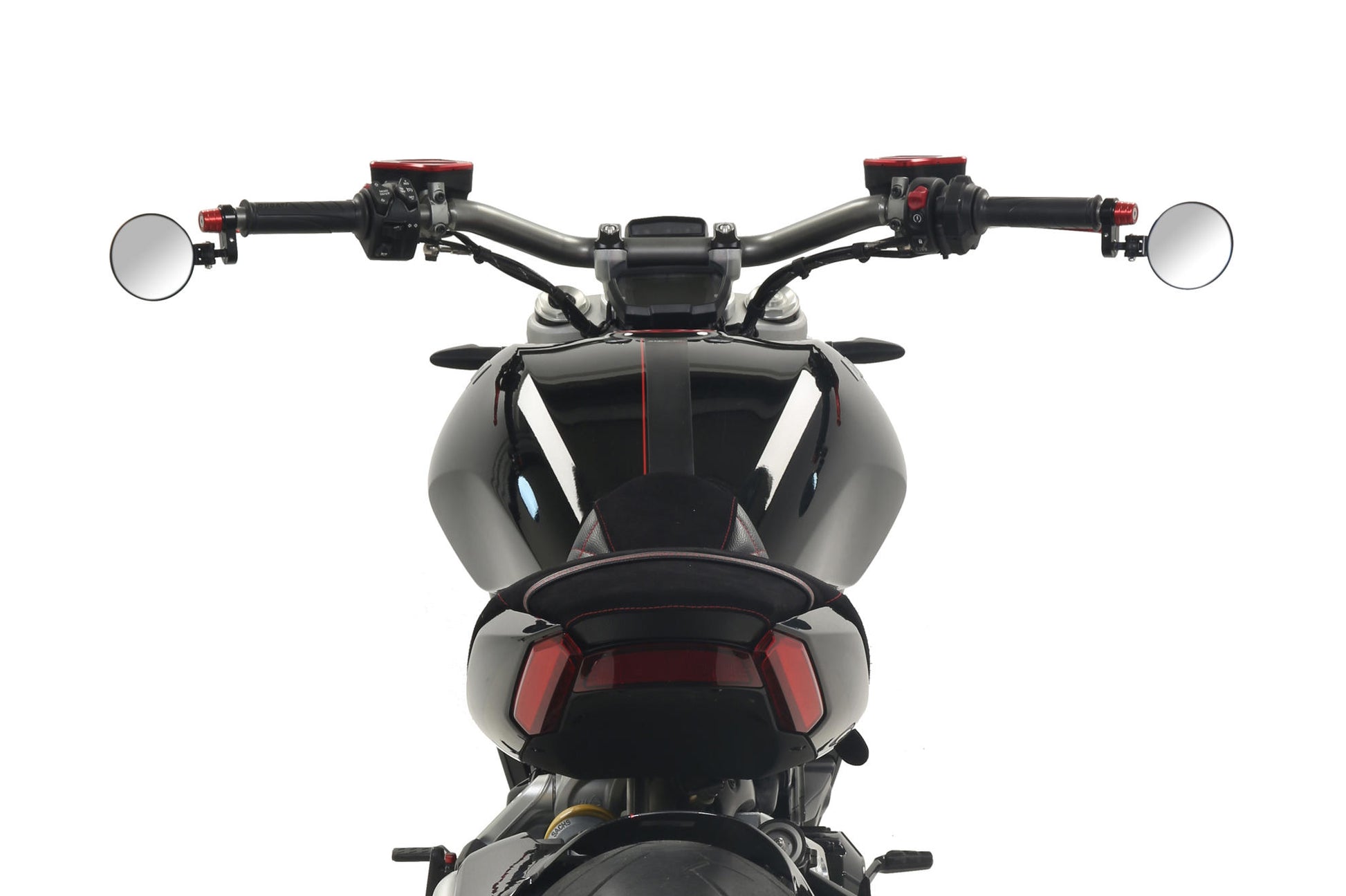 The convex mirror features an 81mm diameter, to ensure the best possible visibility and the mirror can be fitted in either low or high position and is compatible with most handlebars, both original and non, with an expansion assembly system (handlebar internal diameter Ø 13.5/18.5 mm) or with a M6 screw (both included).