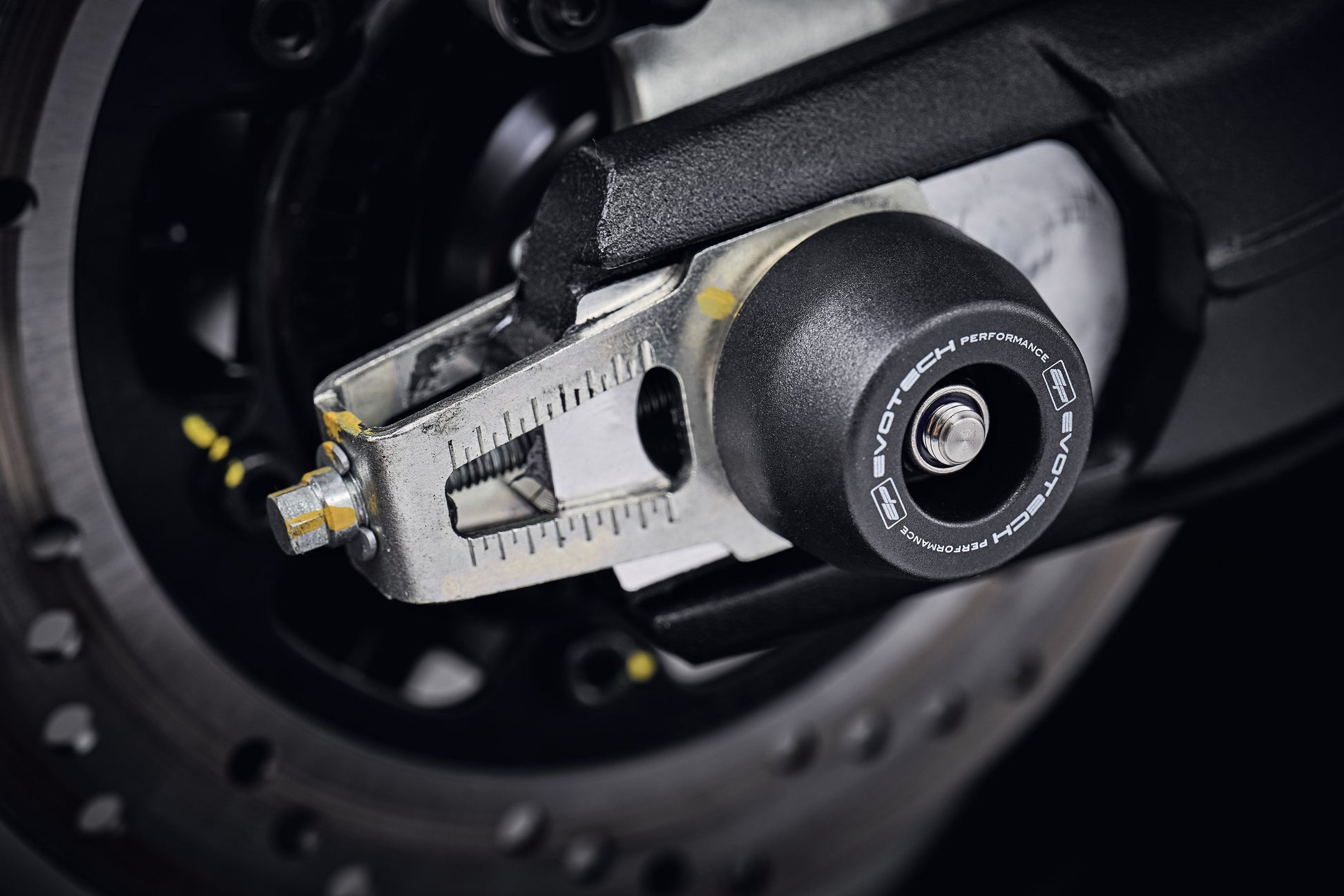 EP Rear Spindle Bobbins are designed to guard the rear wheel lower swing arm, sprocket carriers and brake calipers. As they stand out from either side of the wheel, the bobbin heads are expected to take impact first in an incident with the dual materials offering durability and strength. Furthermore, the nylon bobbin heads are free to shift above the aluminum inner to reduce stress on the wheel.