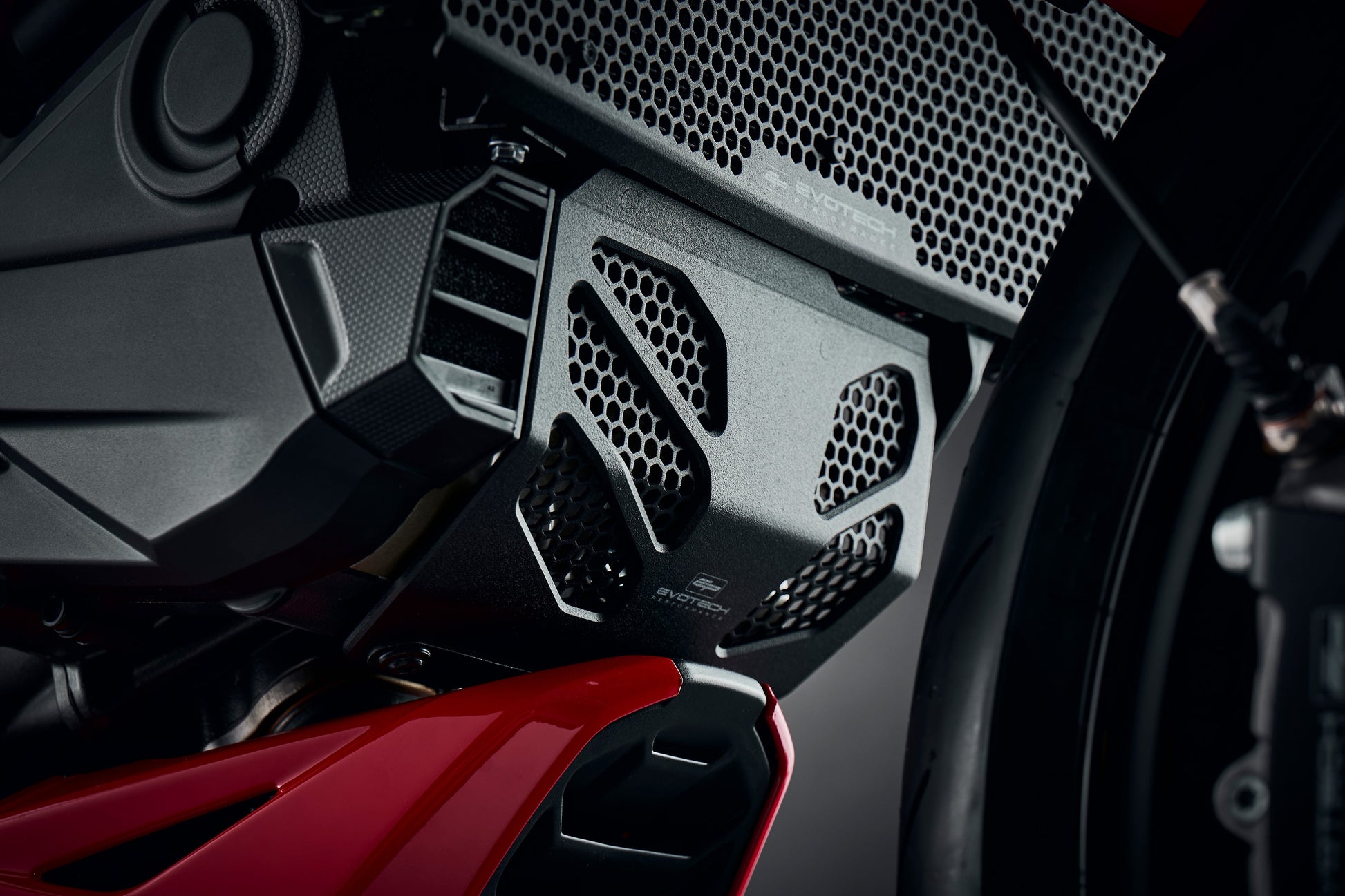 Evotech Performance engine guards fit using the existing mounting points on the bike.