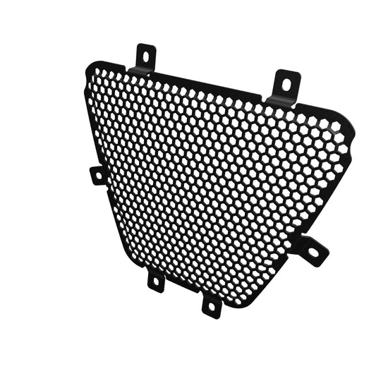 Hexagonal hole pattern to optimize airflow while providing maximum protection from road debris.