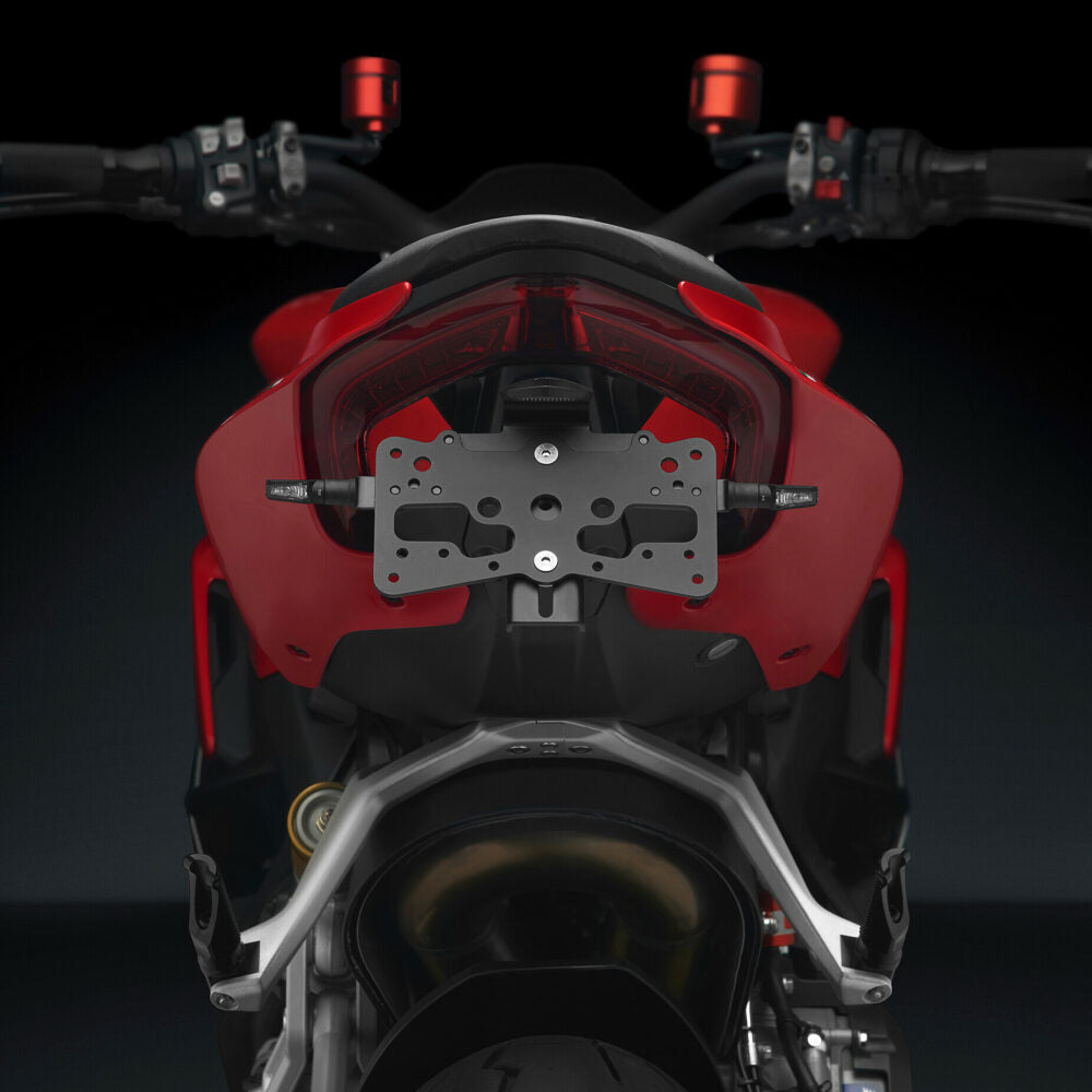 Warning: the Rizoma PT538B license plate support does not fit with Termignoni® under-tail exhaust with two pipes only (compatible with under-tail exhaust with four pipes).