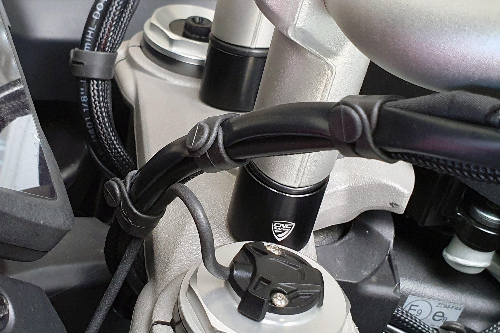 original riser column and two special stainless steel screws.Installation is very simple and does not require modifications.NOTE: not compatible with the RM251 handlebar clamp.