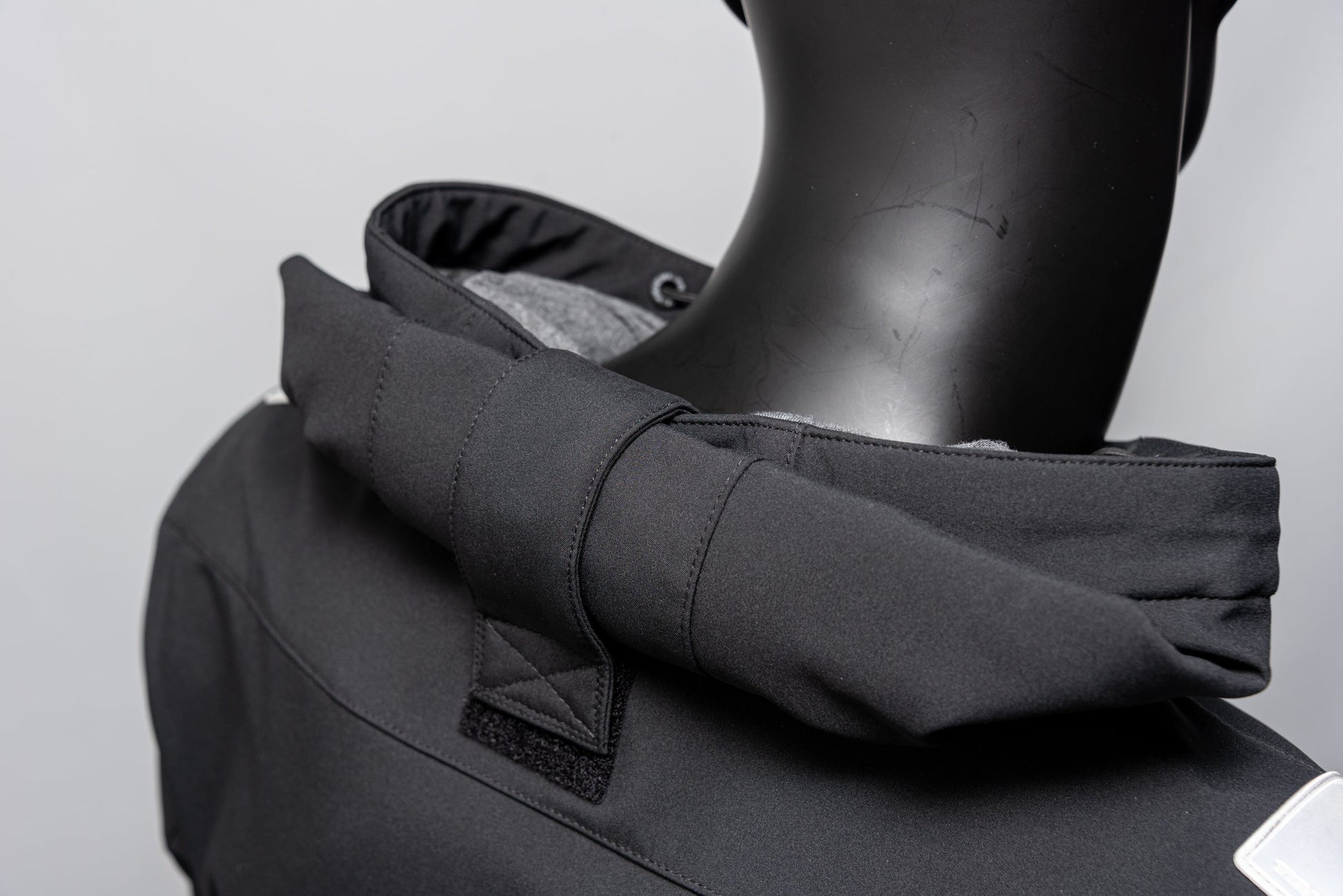 Hold the hood with Velcro Roll in hood to avoid flutter. |