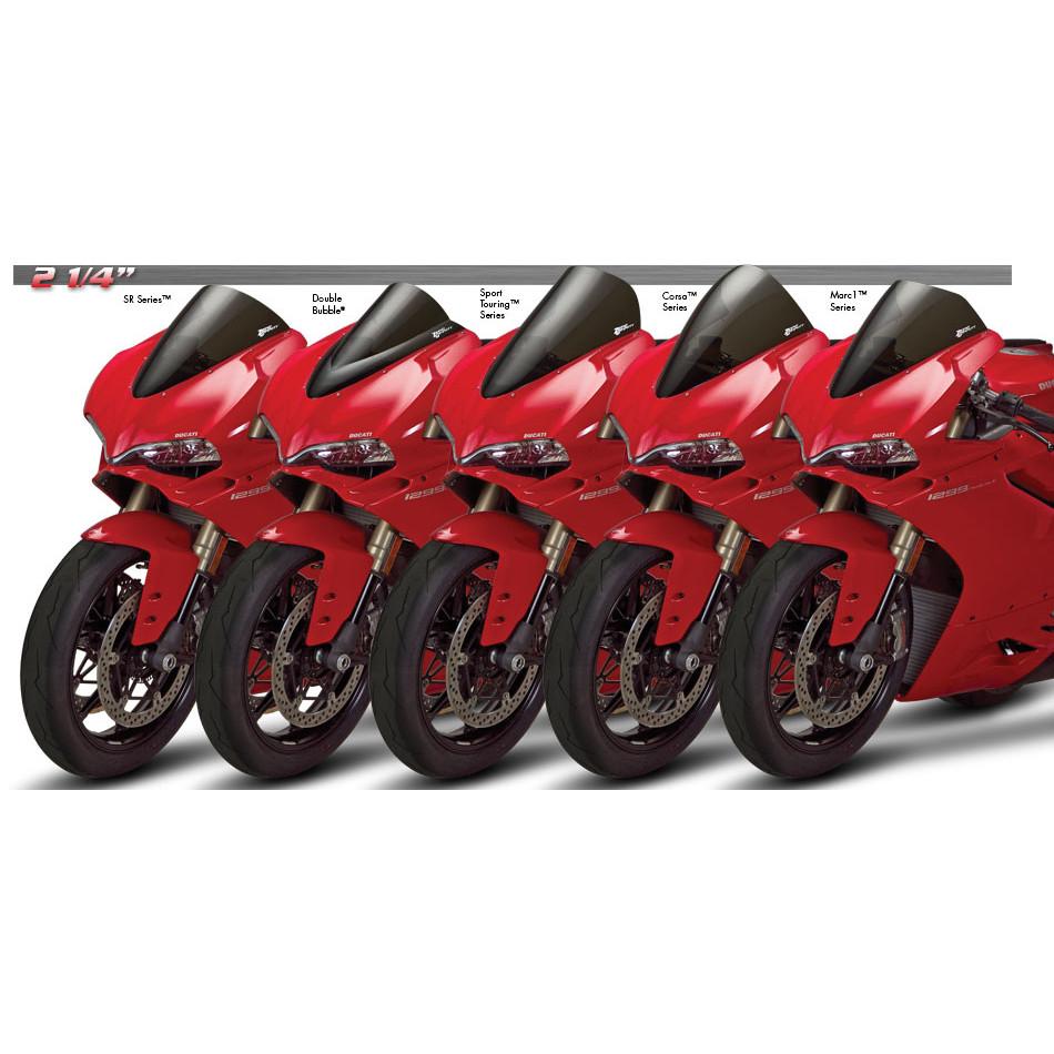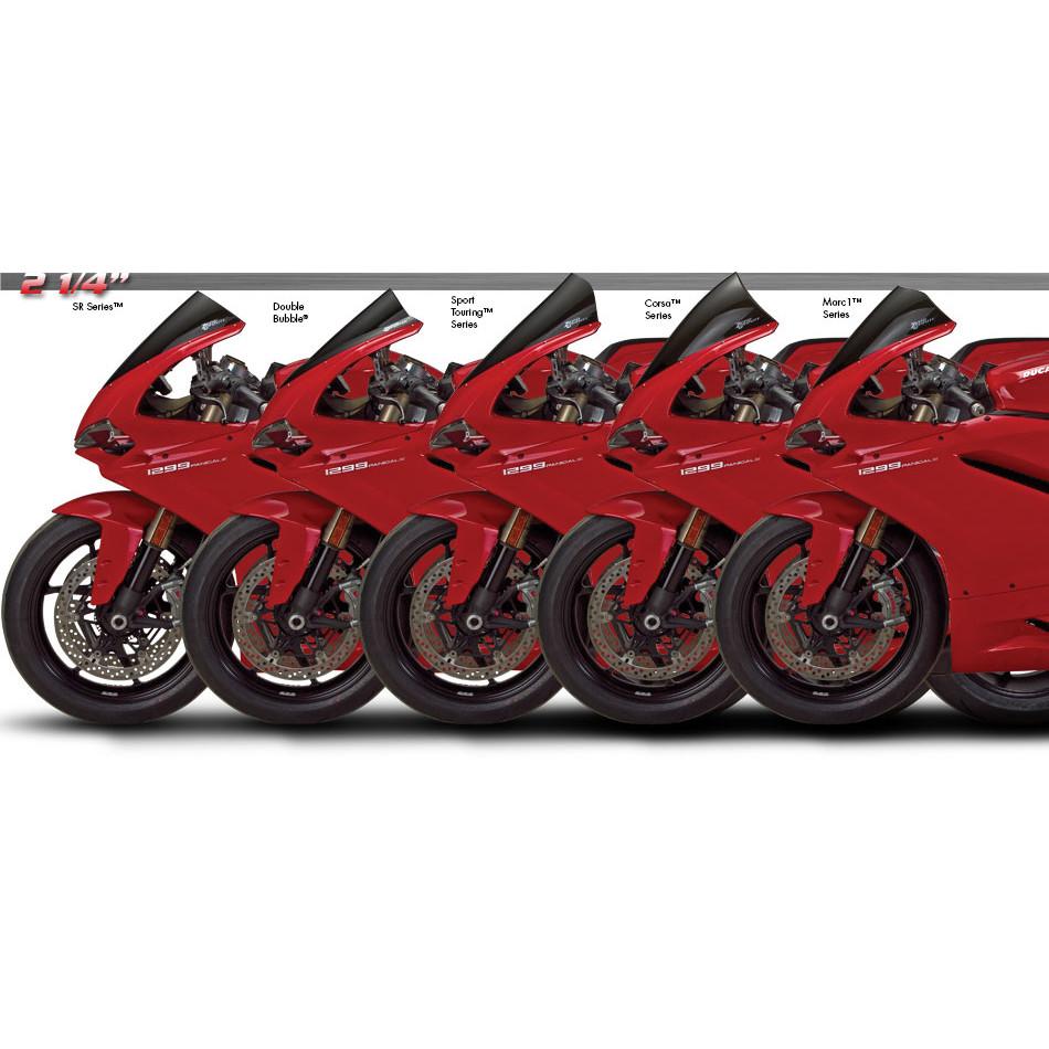 Designed for maximum aerodynamic edge and aggressive, weight-forward riding style. Engineered with styling and performance like MotoGP bikes. Squeeze every bit of aerodynamic advantage out of your bike with maximum buffeting protection while head down and pushing for the win.